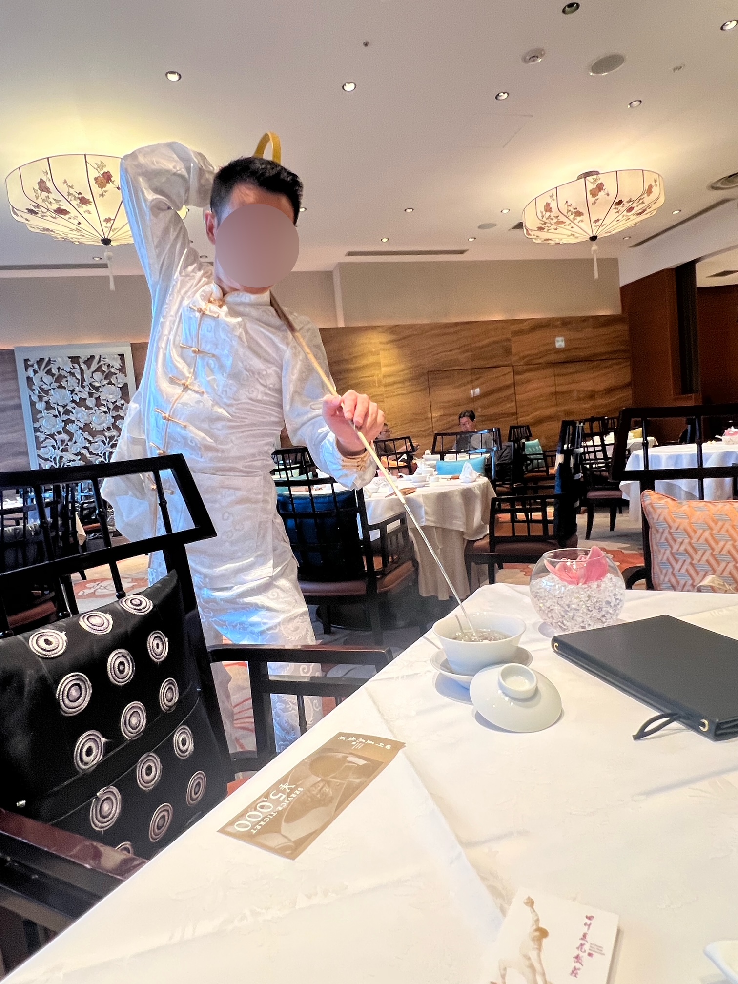 ここではティーマスターと呼ばれる茶藝職人が芸術的なパフォーマンスで八宝茶をいれてくれます。