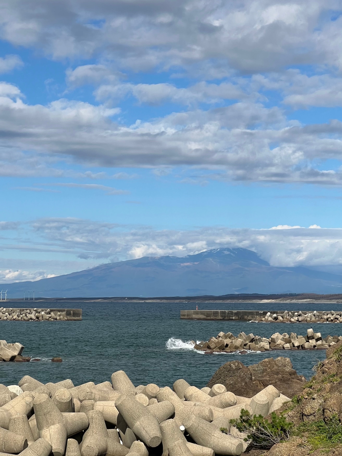 今まで、仁賀保あたりから見る「鳥海山」が一番きれいな姿だと思いましたが、今回庄内(酒田市)方面から見た「鳥海山」の方がむしろ雄大で格好いいと思いました。