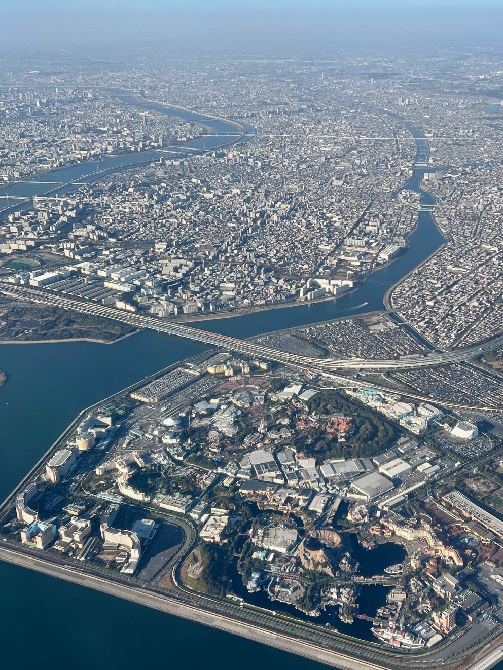 帰りの機内からもディズニーランドとシーがバッチリ見えていました。