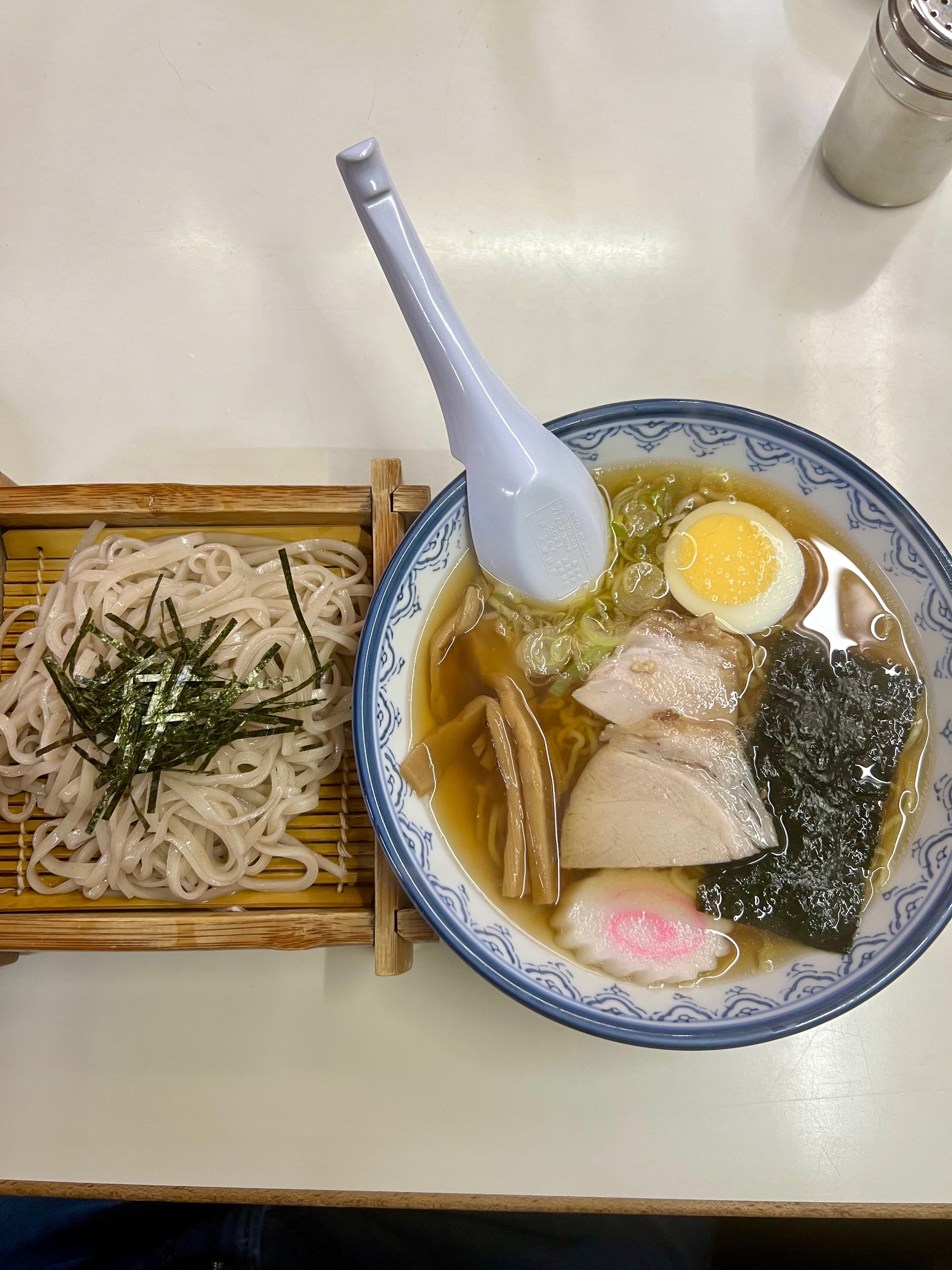 中華そばを求めていくお店は「半」メニューがあるので、「中華そば・半」と「もり蕎麦・半」の組み合わせも出来ます。