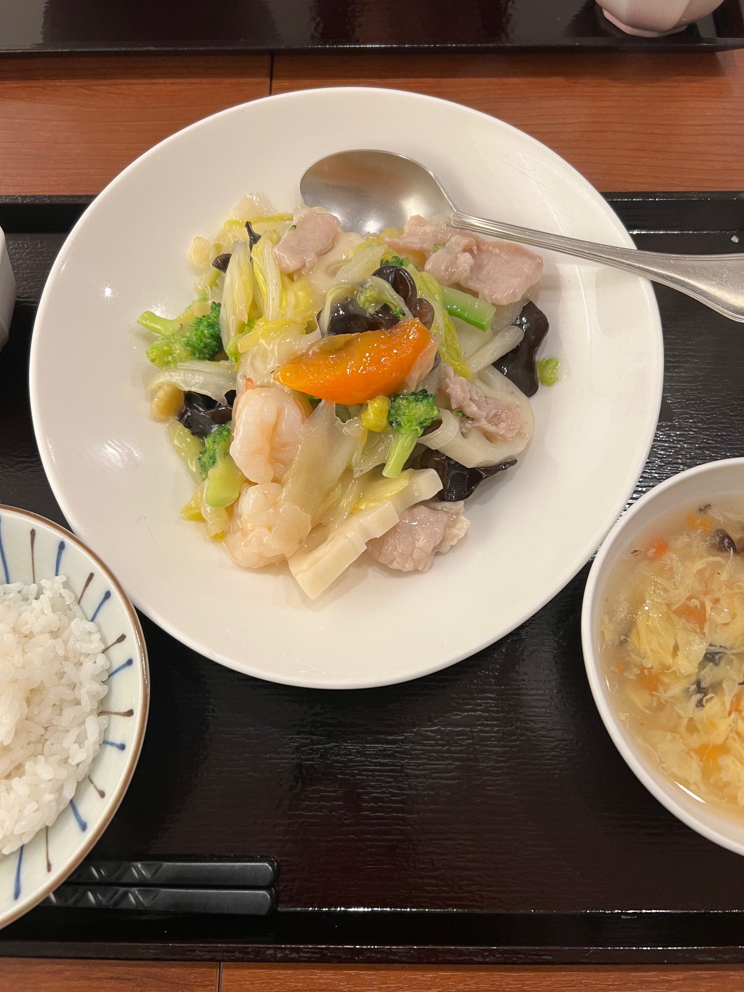 この日は久しぶりに注文しましたが、野菜をいっぱい食べたかったので、最後まで「八宝菜」と迷いました。