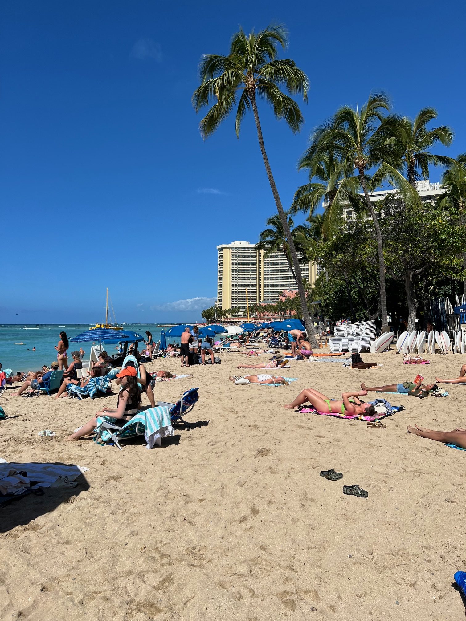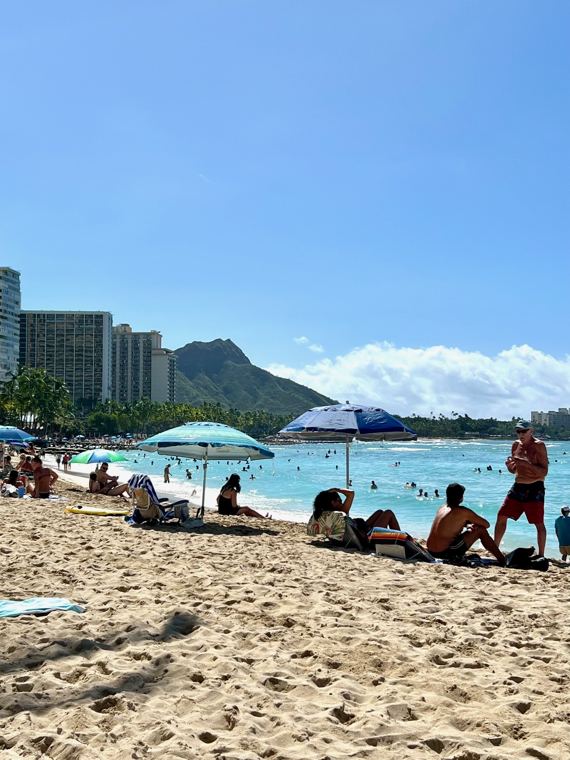 写真ではわかりませんが、ワイキキビーチも海が浸食してきていて、ビーチの砂浜の部分がだいぶ狭くなっているようです。海際のホテルでは既に建物まで海水が来るようになり、コンクリートで壁を作って凌いでいるとか…。