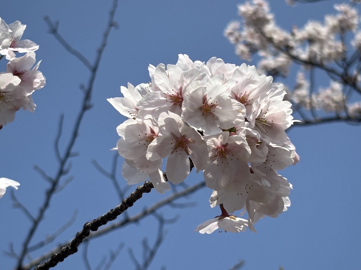 晴天のぽかぽか陽気の中での満開の桜。 LINEで写真を送ってくれた皆さんも気持ちが弾んでいるような文章です。