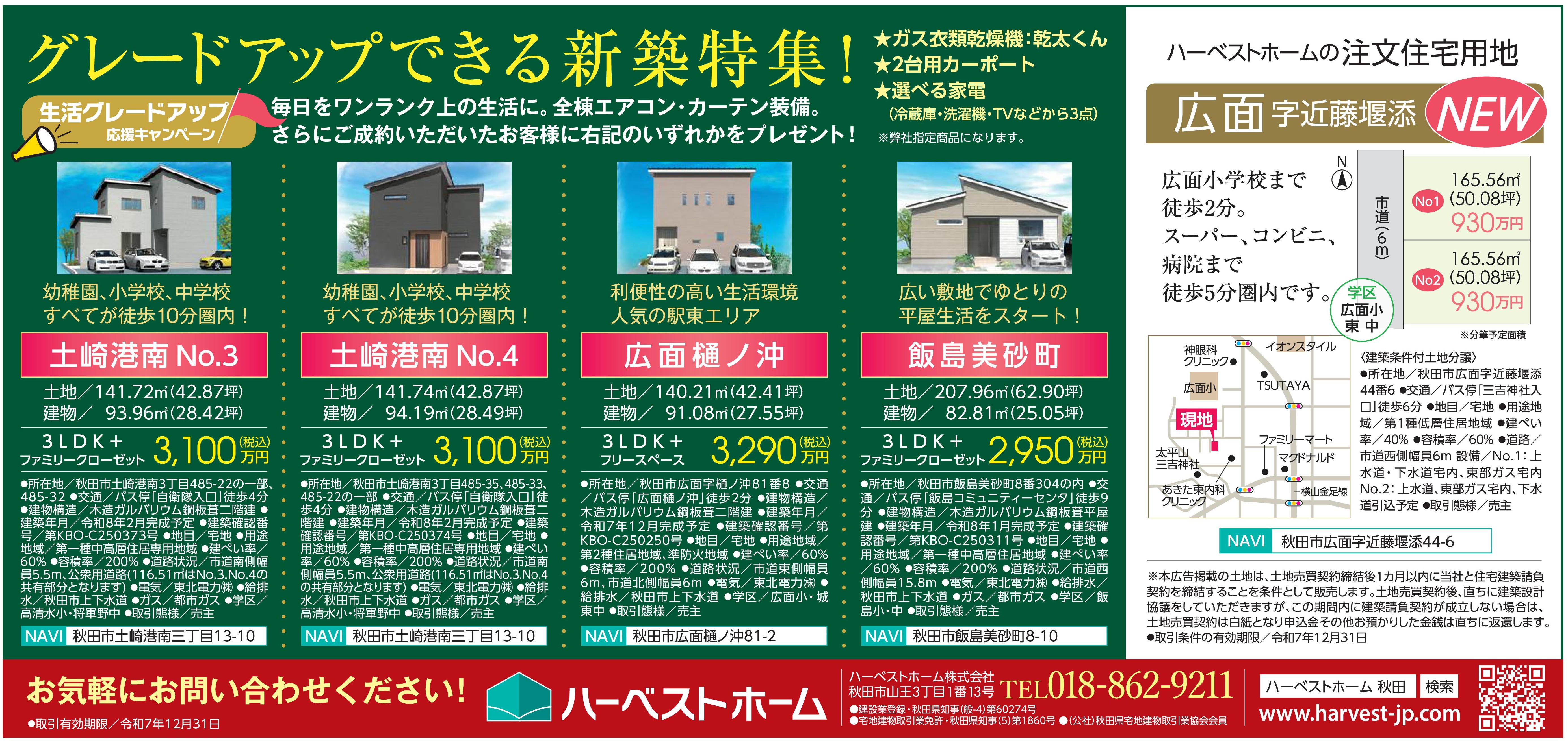 「建売住宅4棟」グレードアップできる新築特集! 「注文住宅用地」広面近藤堰添 2区画販売開始!