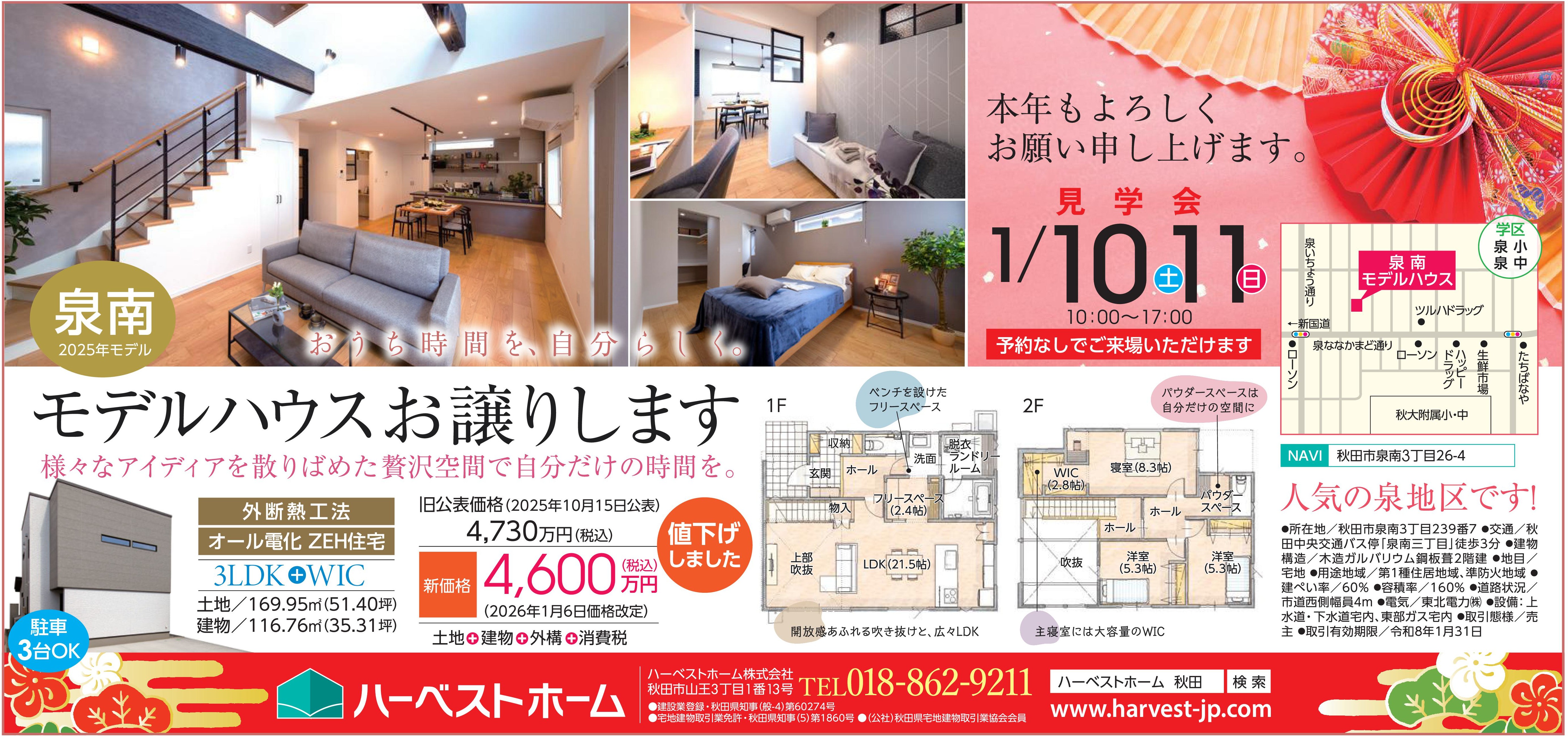 1月10日㈯・11日㈰ 泉南モデルハウス新価格でお譲りします | ハーベストホーム株式会社